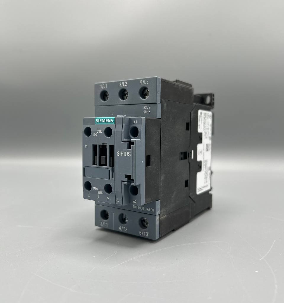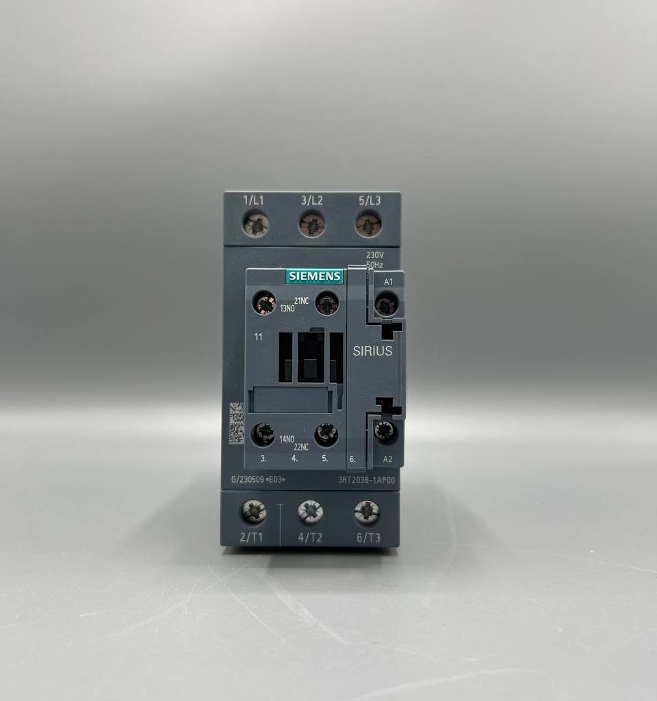 کنتاکتور صنعتی Siemens 3RT20 برای راهاندازی، قطع و وصل موتورهای سهفاز تا توان 37 kW طراحی شده و مناسب استفاده در تابلوهای برق صنعتی و سیستمهای اتوماسیون است